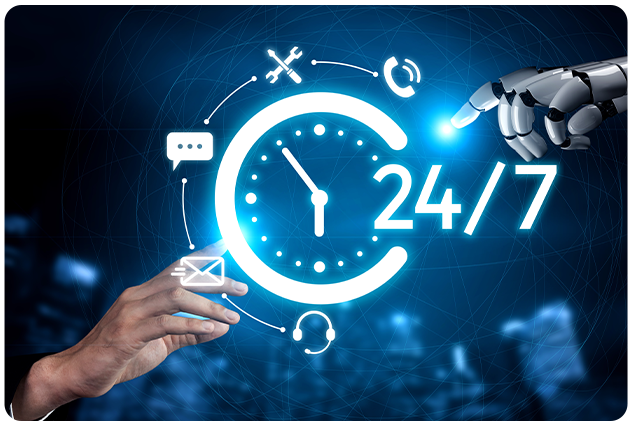 Il Nurtigo Chatbot AI  lavora senza sosta, garantendo risposte immediate a qualsiasi ora del giorno e della notte, festivi compresi.
