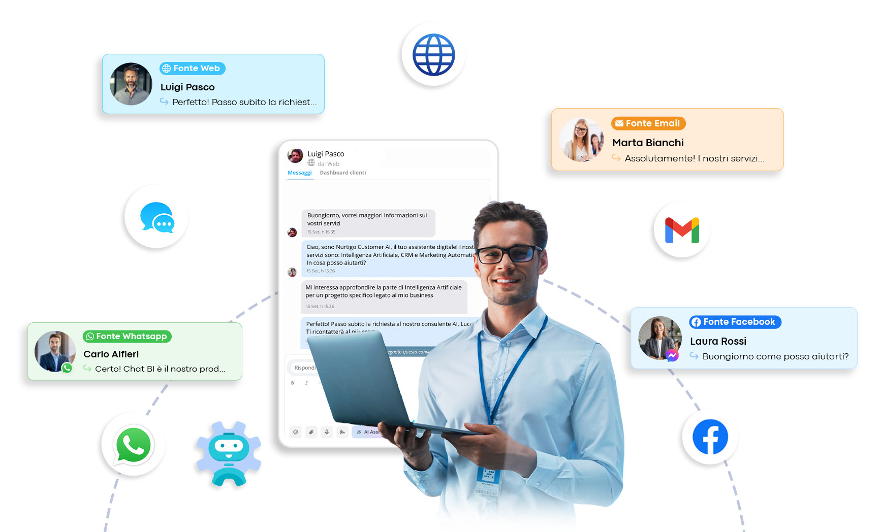 Centralizzare i canali di comunicazione ti permette di avere sempre una visione completa dei clienti, ridurre i tempi di risposta e migliorare la gestione dei lead, senza rischiare di perdere opportunità lungo il percorso.